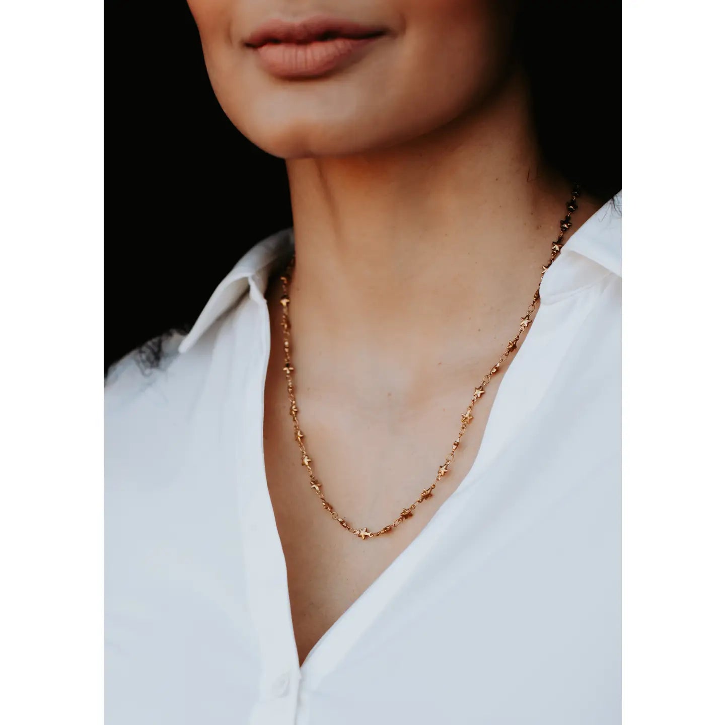 Shine bright with this stunning Star Chain Necklace. Elegantly simple, it features delicate star accents that add a touch of celestial charm to any outfit.
