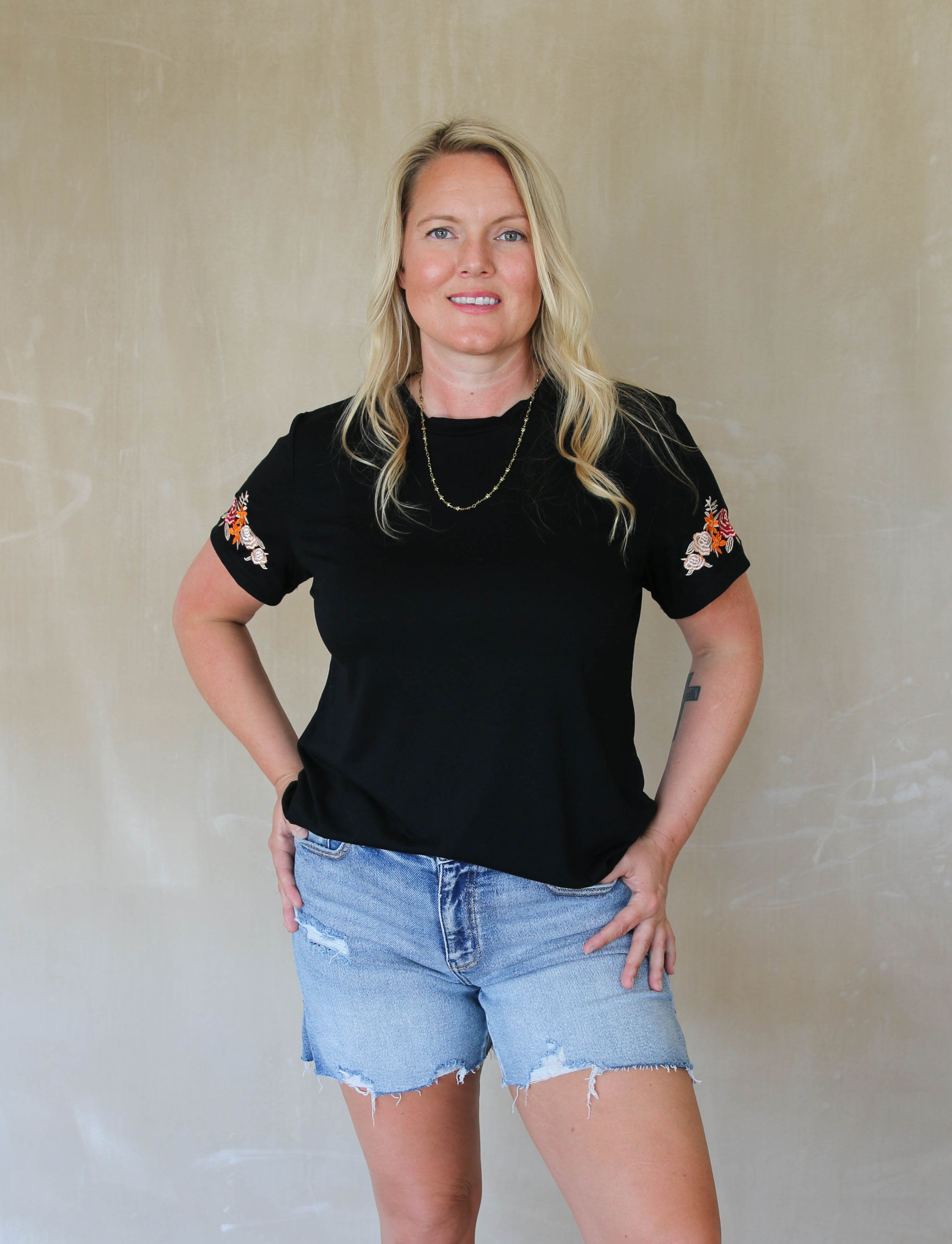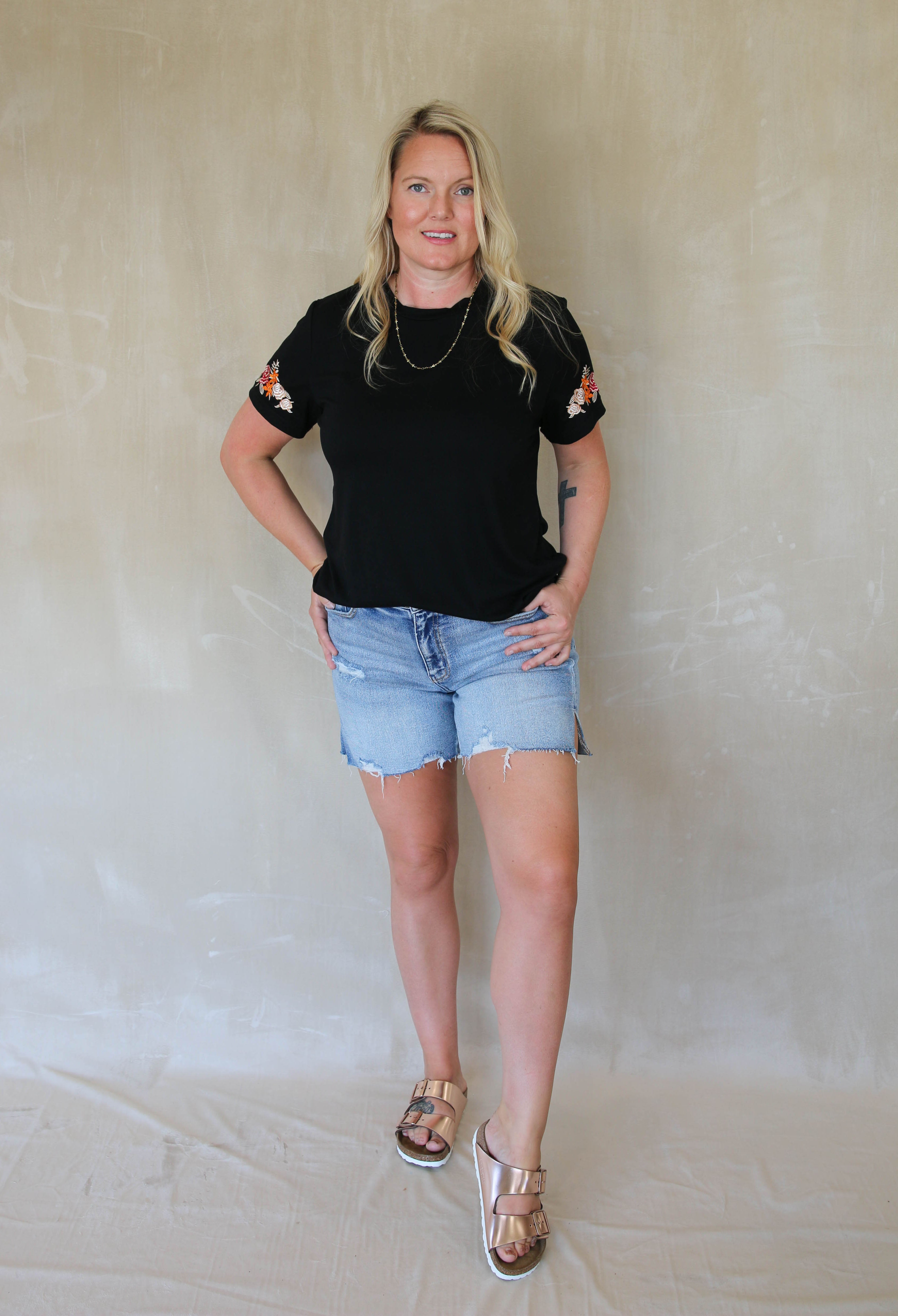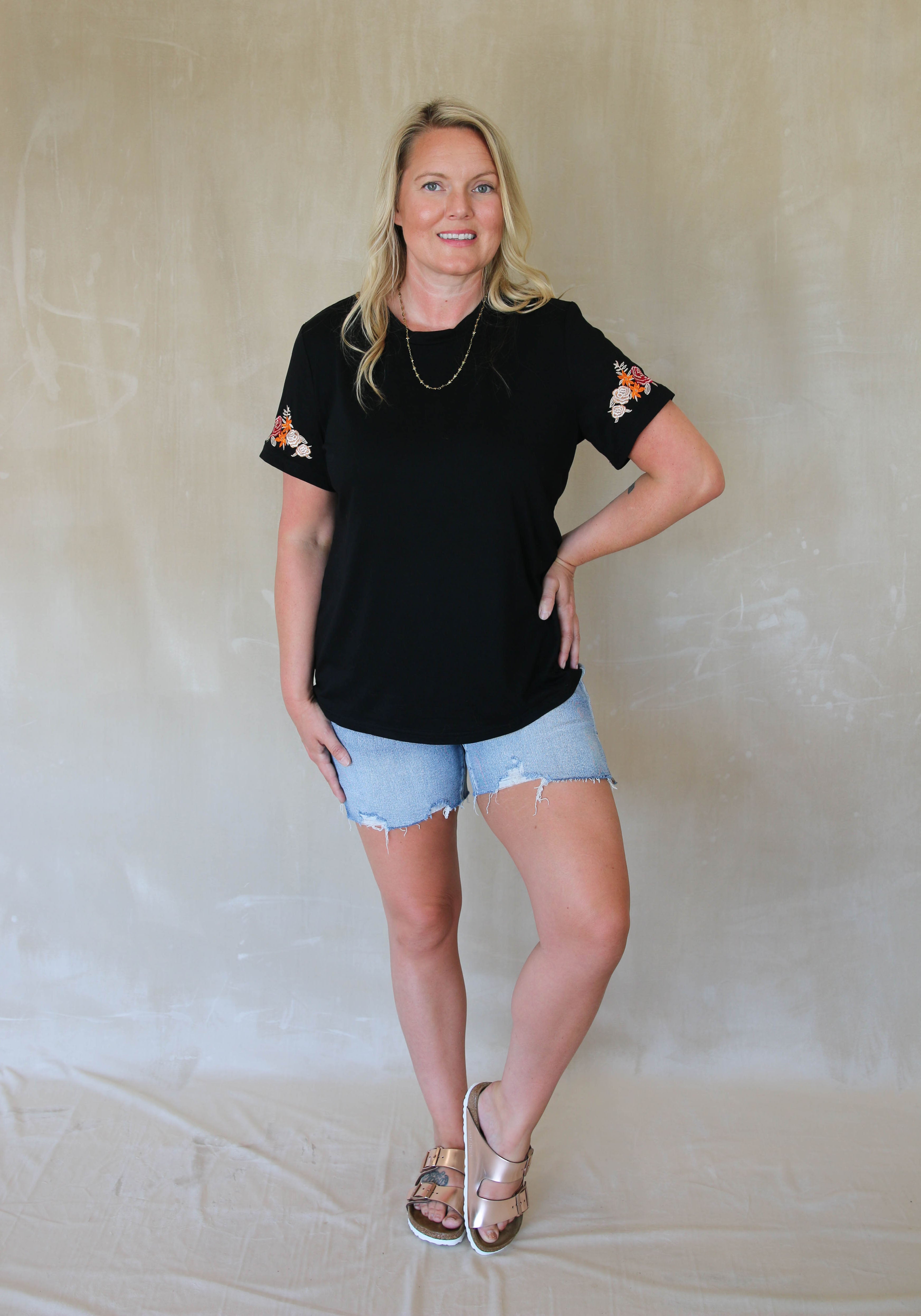 Floral Embroidered Round Neck T Shirt