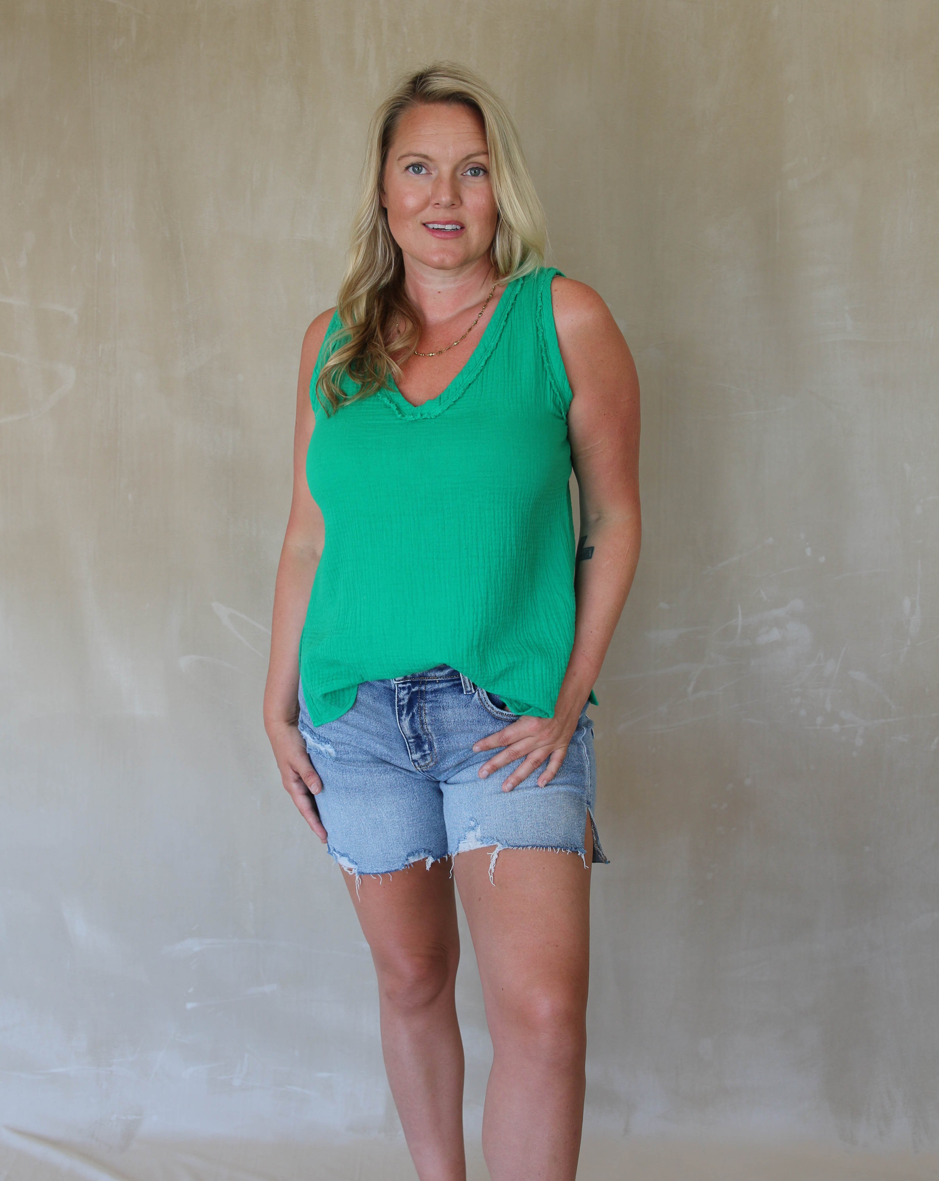 Easy V Neck Tank Top - Lily Pad