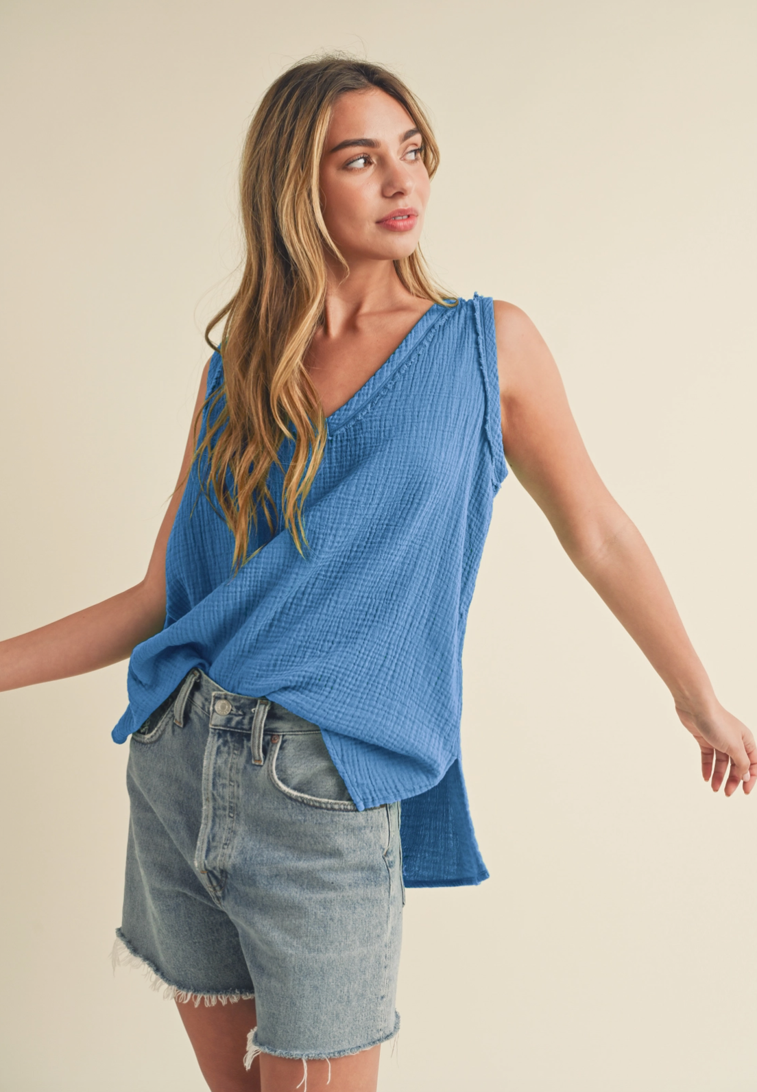 Easy V Neck Tank Top - Azul