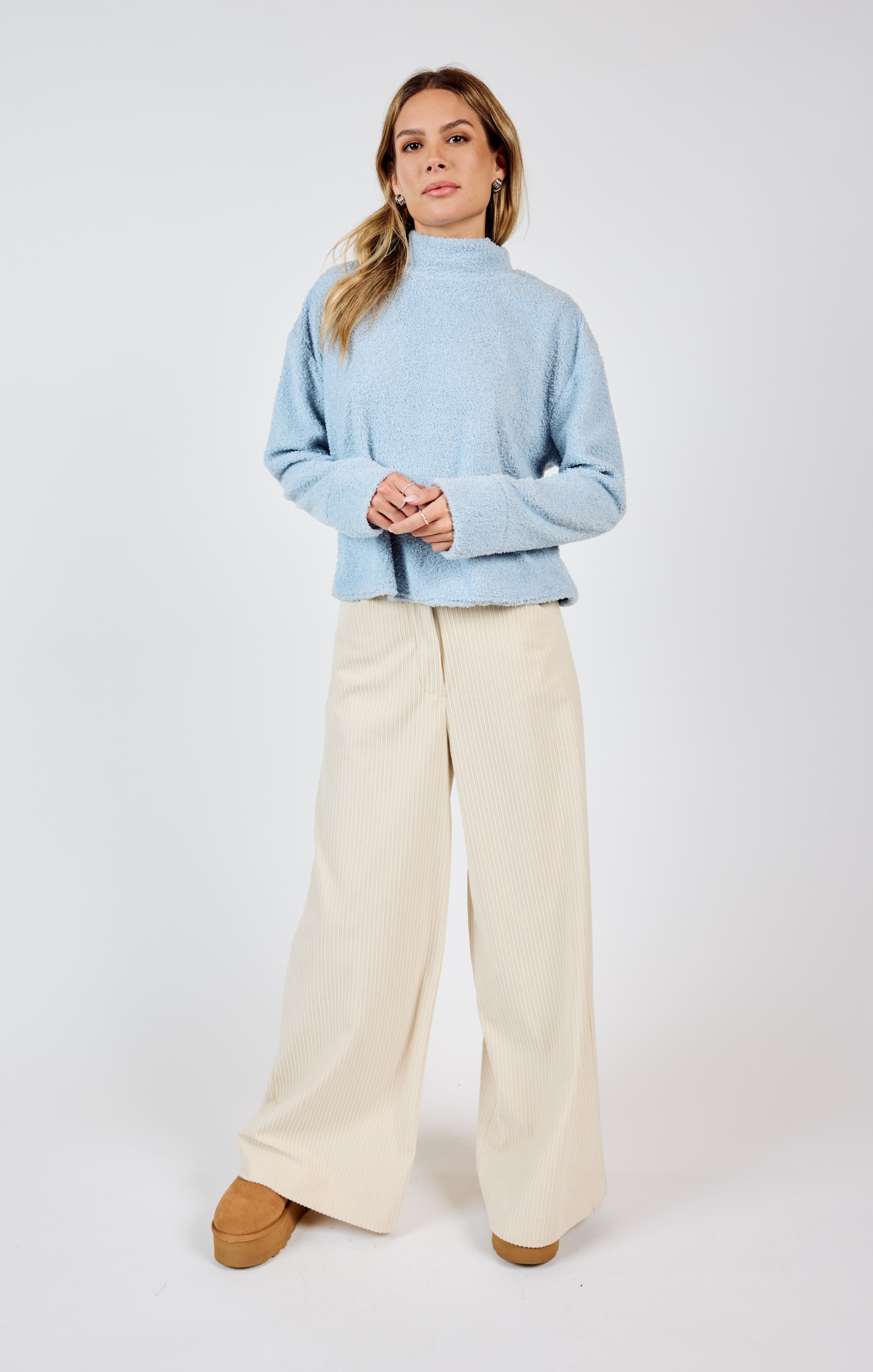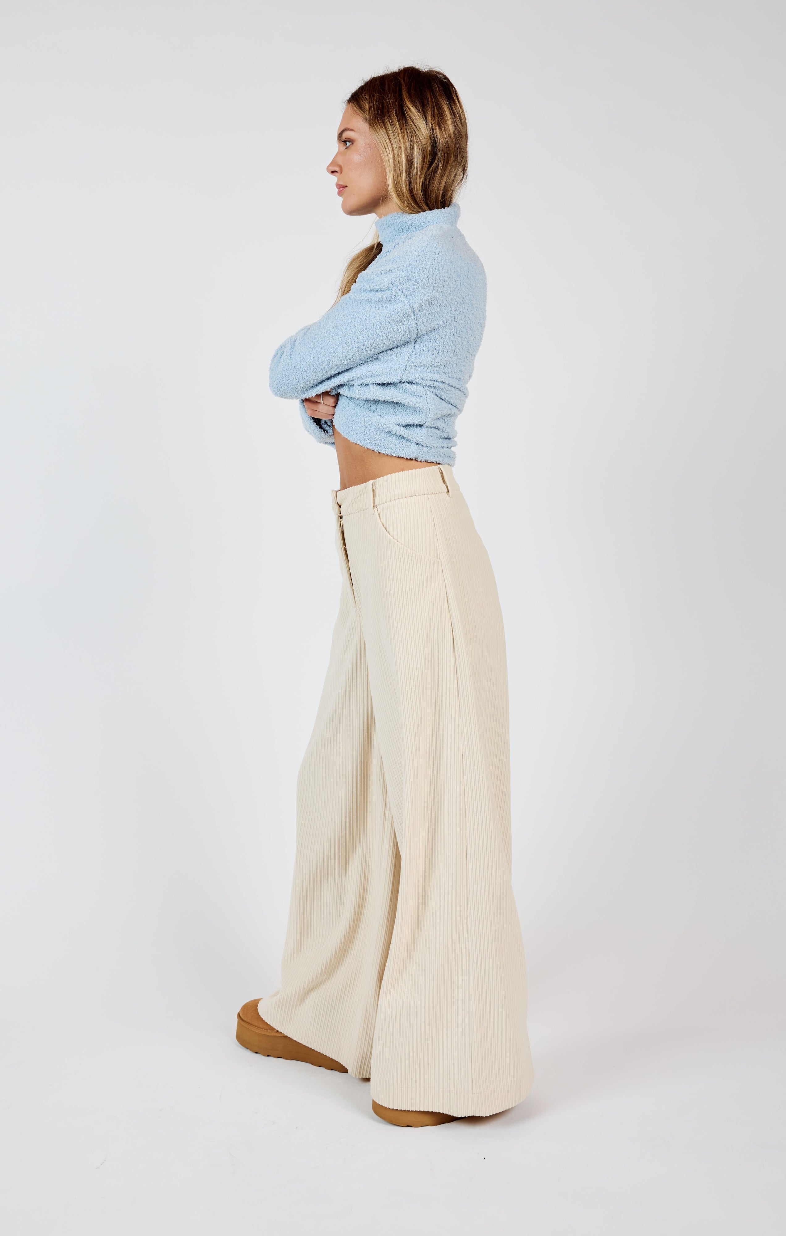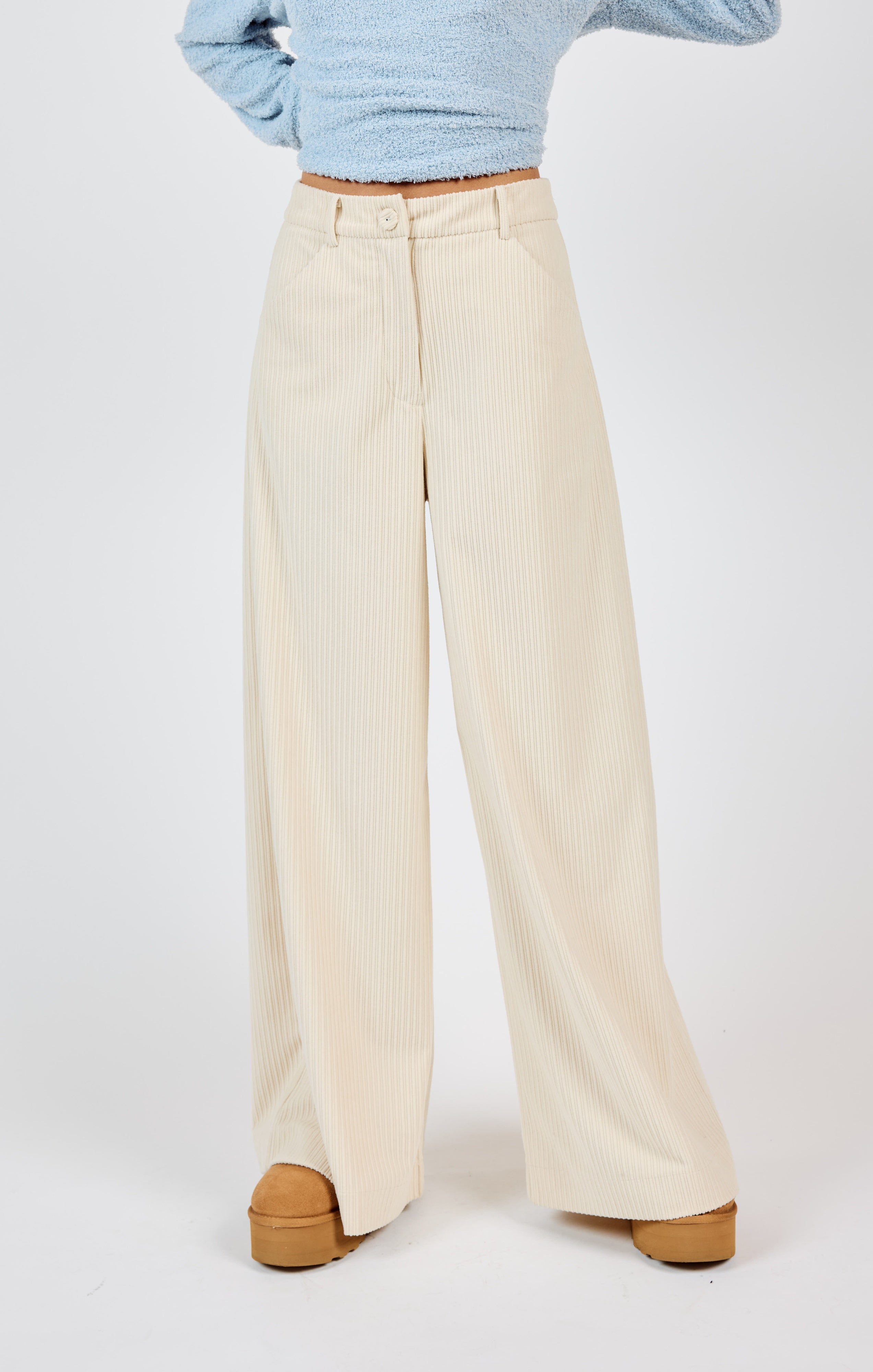 Step into effortless sophistication with the Nourish Corduroy Wide Leg Pants. These pants combine timeless corduroy texture with a modern wide-leg silhouette, making them a versatile addition to your wardrobe.