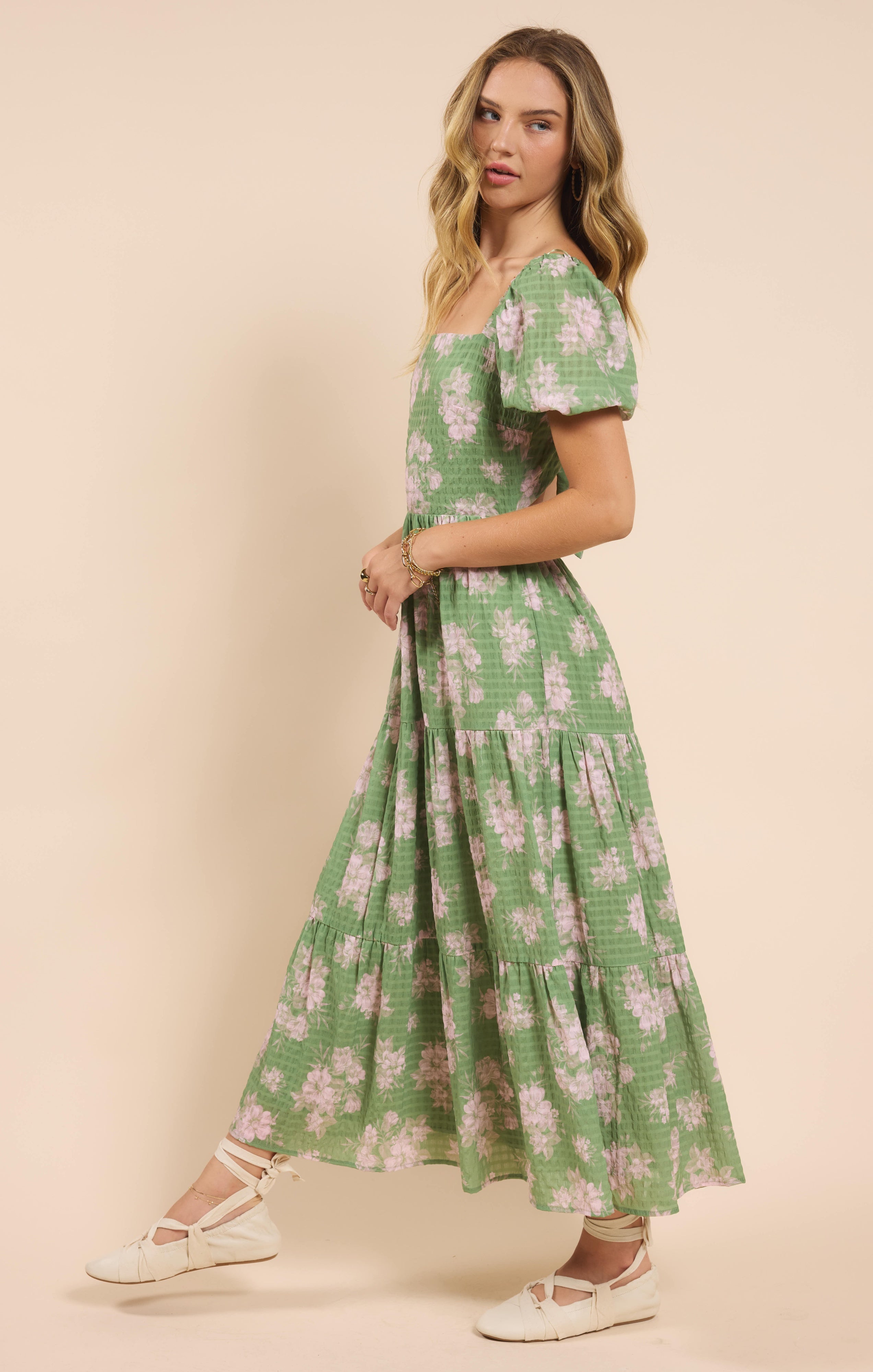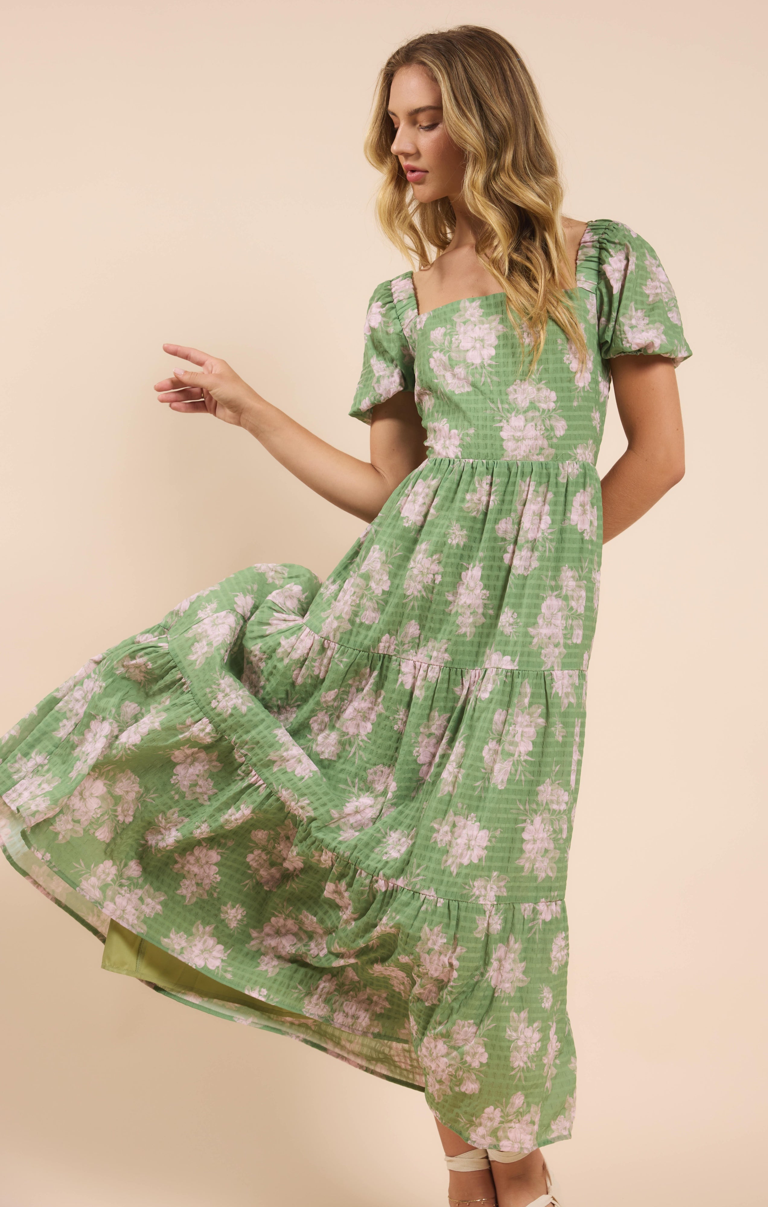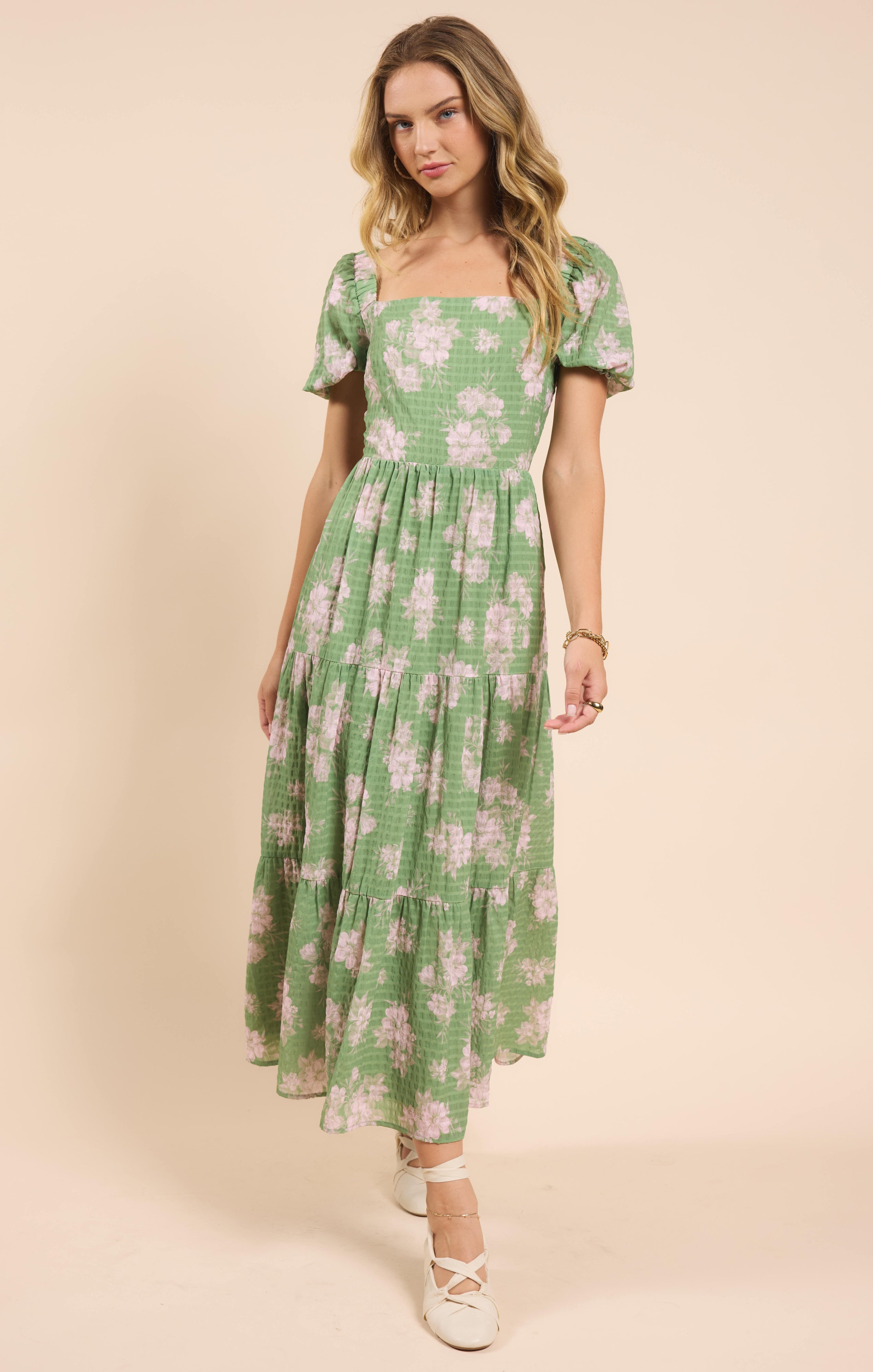 Rose Tier Puff Sleeve Dress