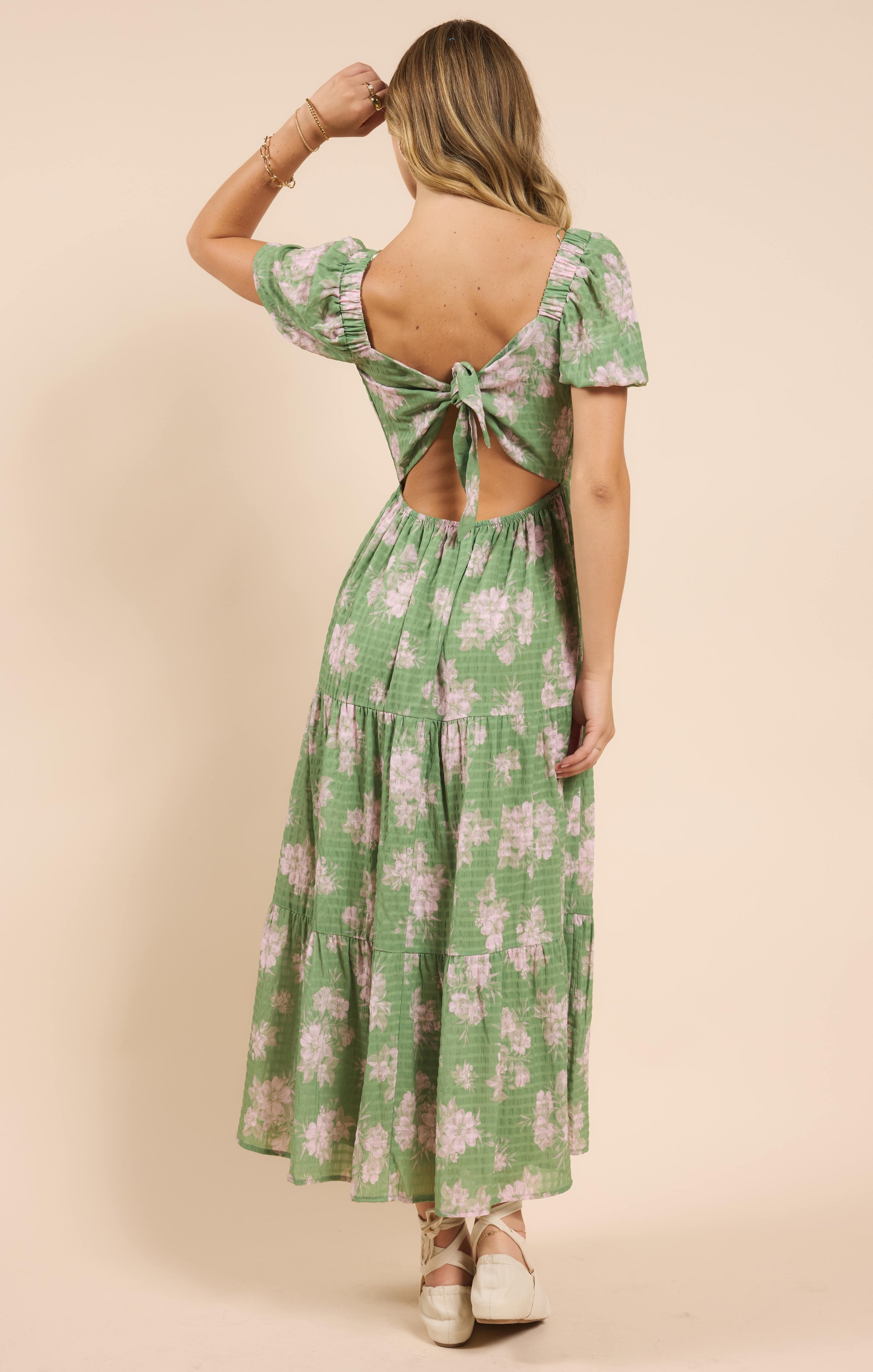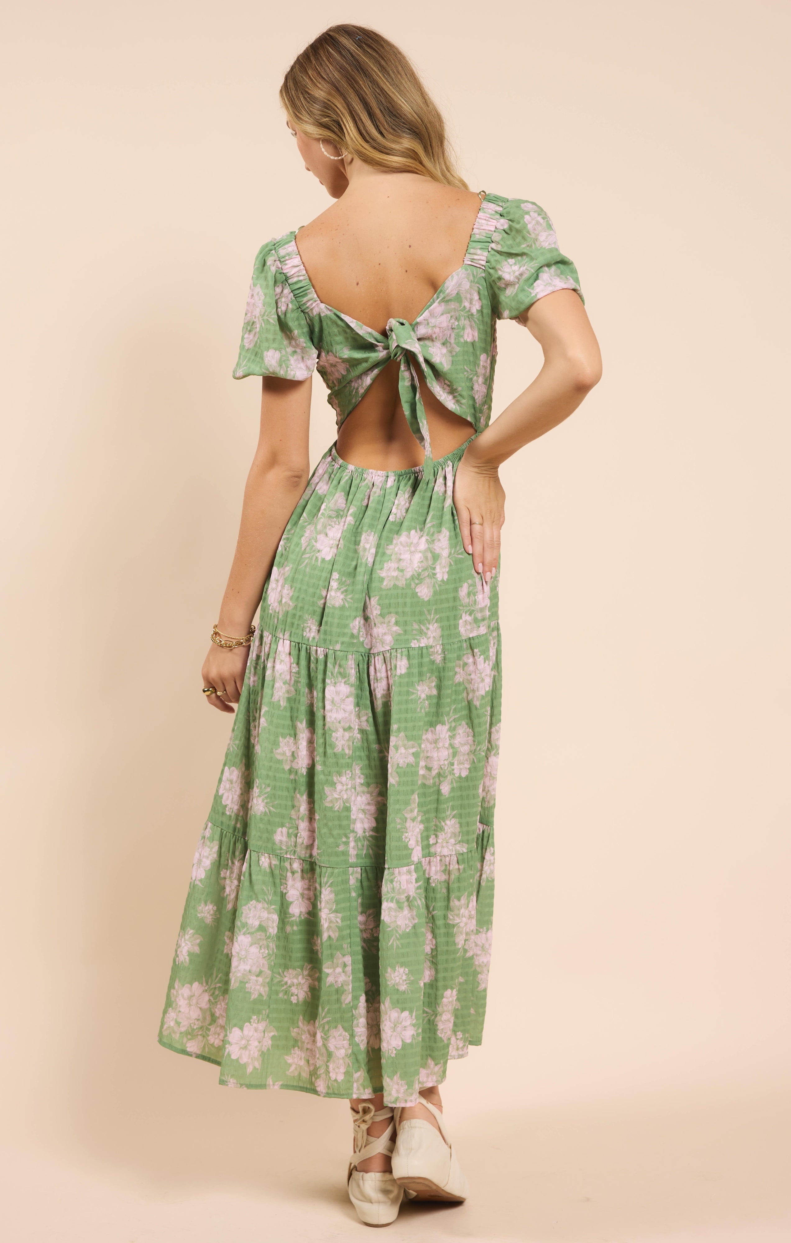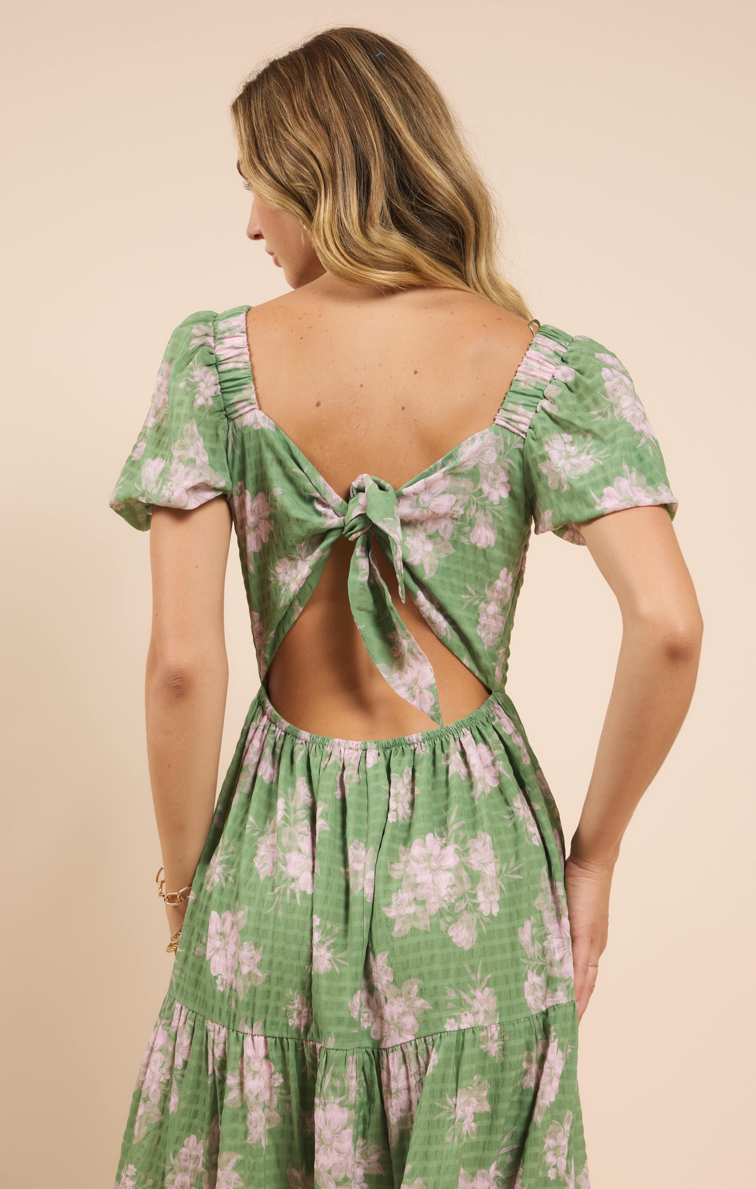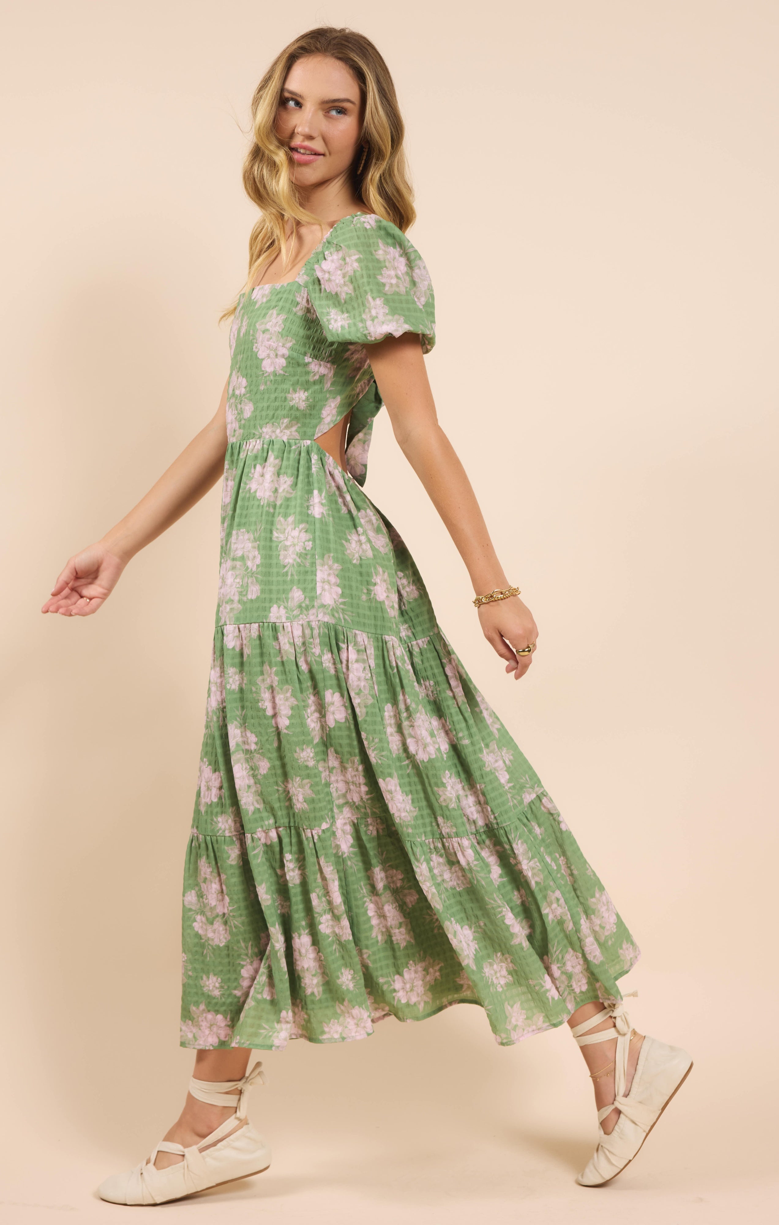 Rose Tier Puff Sleeve Dress