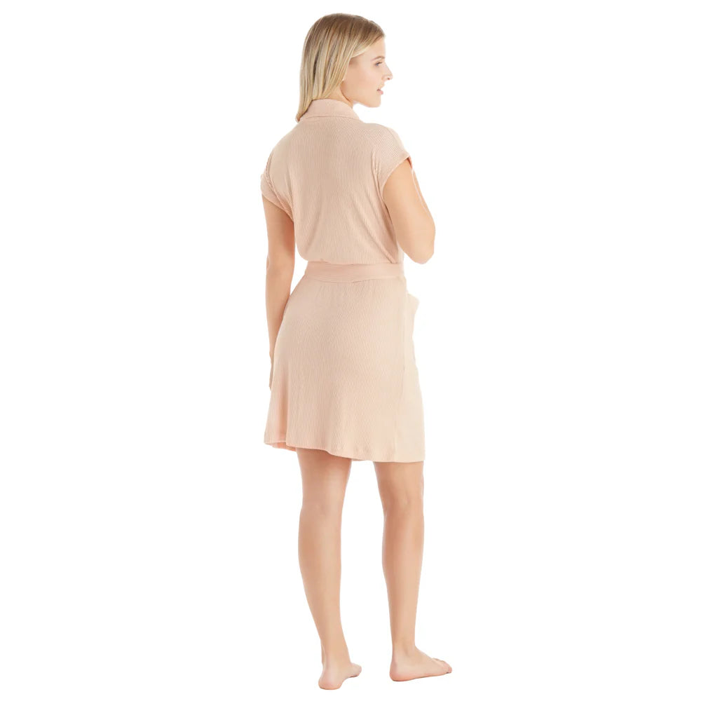 Wrap yourself in bliss with the Rib Dream 35" Cap Sleeve Robe. This piece is made for your spa day in, enveloping you in our silky, rich Dream fabric. Its ribbed texture cascades along every curve and brings warmth without the weight.
