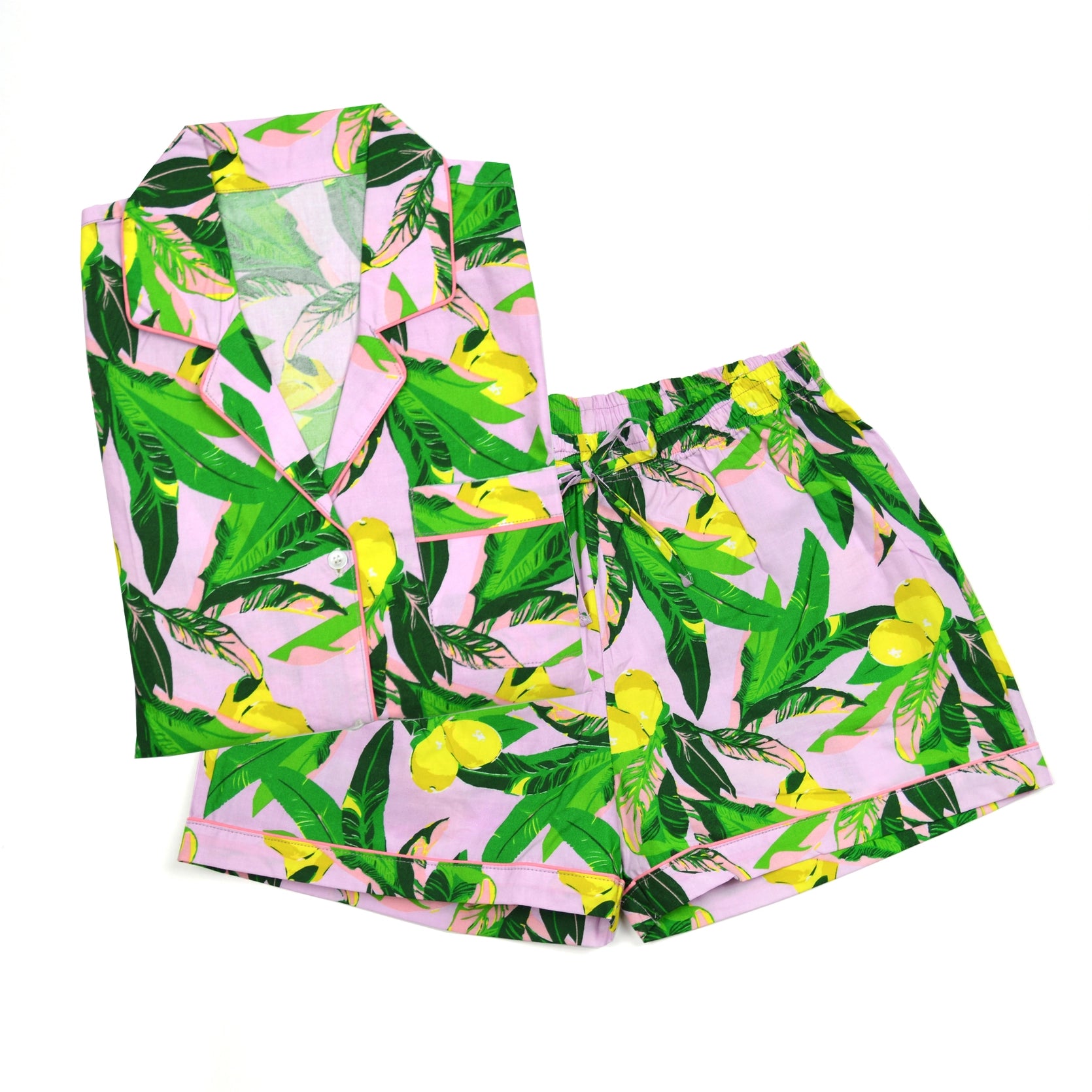 Take relaxation to the next level in our Lavender Lemons PJ Set with Shorts & Long Sleeve Top. This chic two-piece cotton set is as comfortable as it is stylish, allowing you to transition seamlessly from lounging at home to tackling your day - after all, these days pajamas are a new kind of business casual.