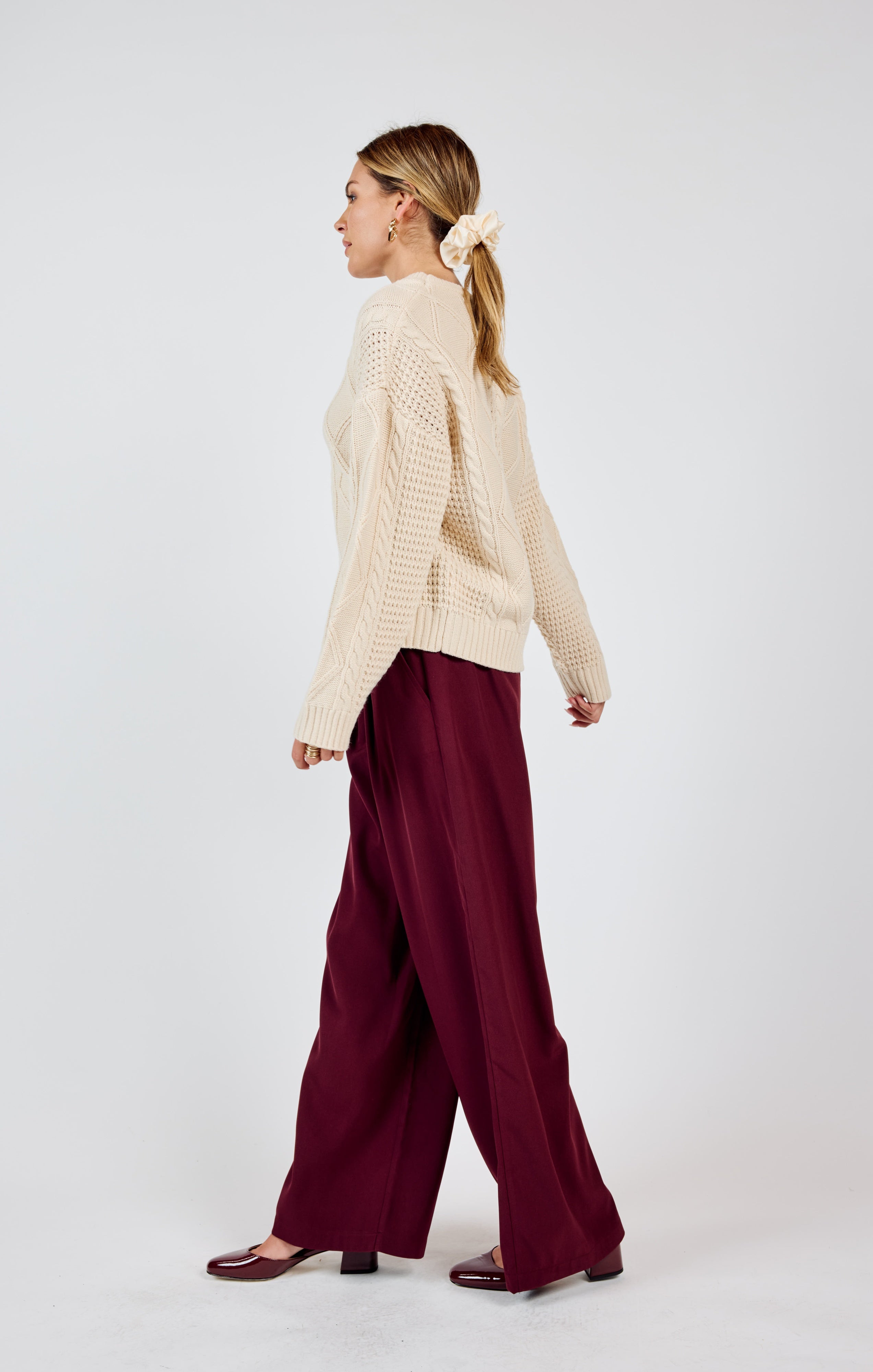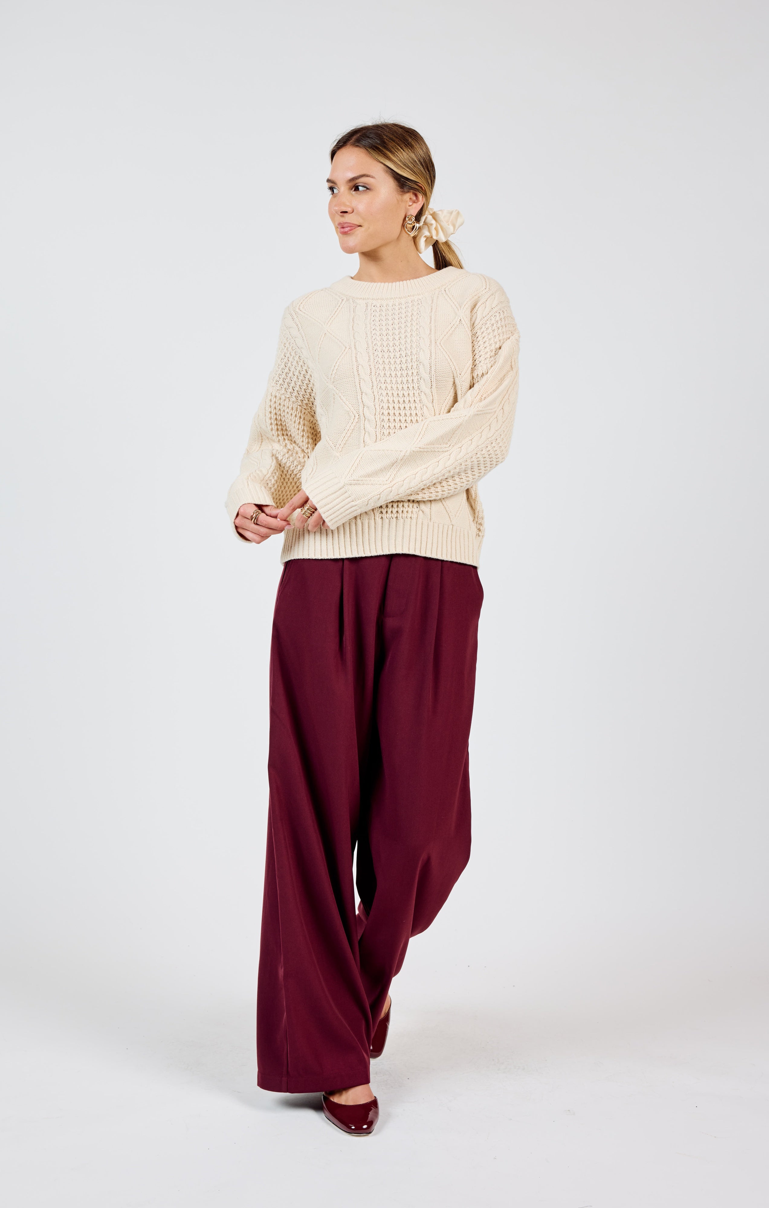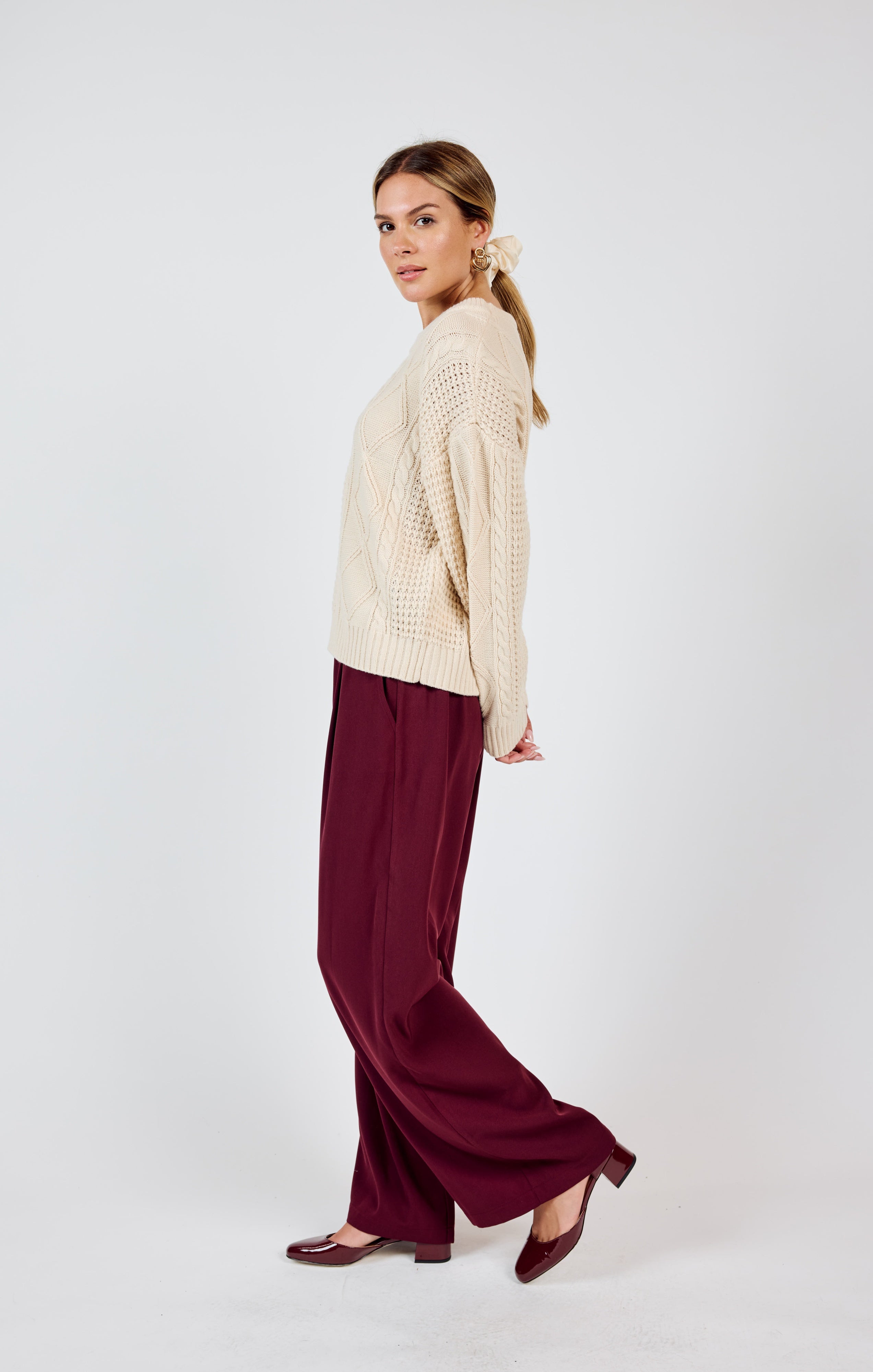 Teri Cable Knit Crew Neck Sweater