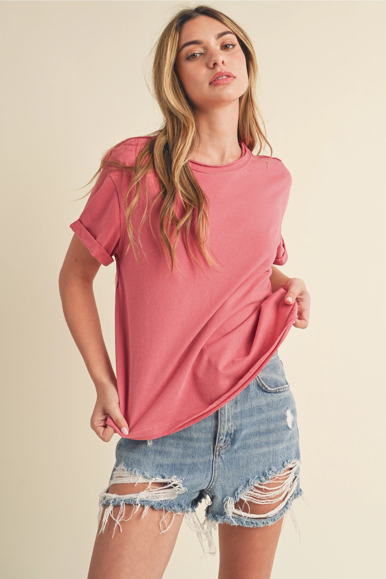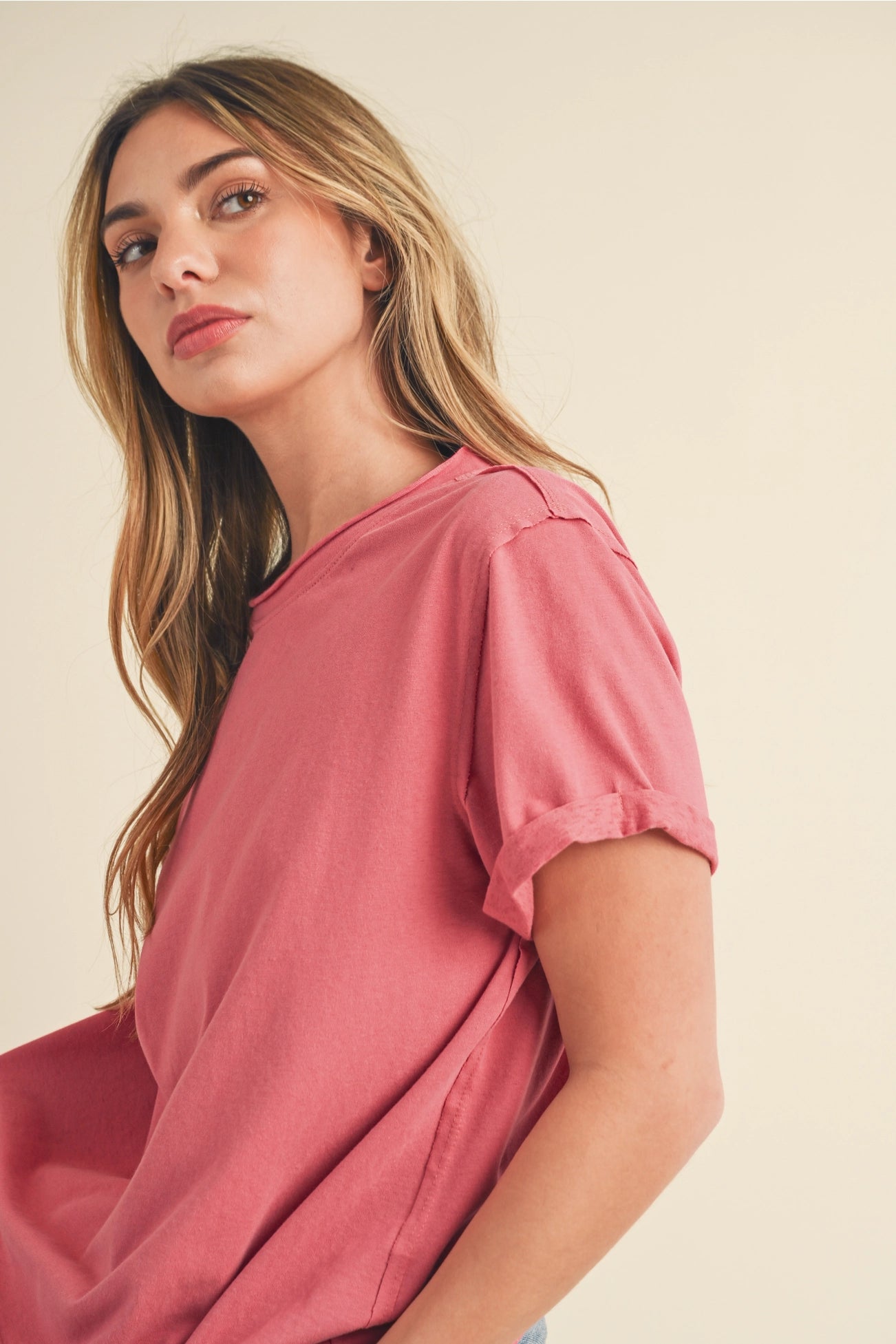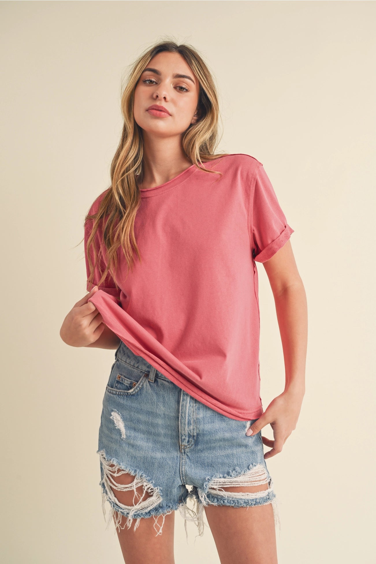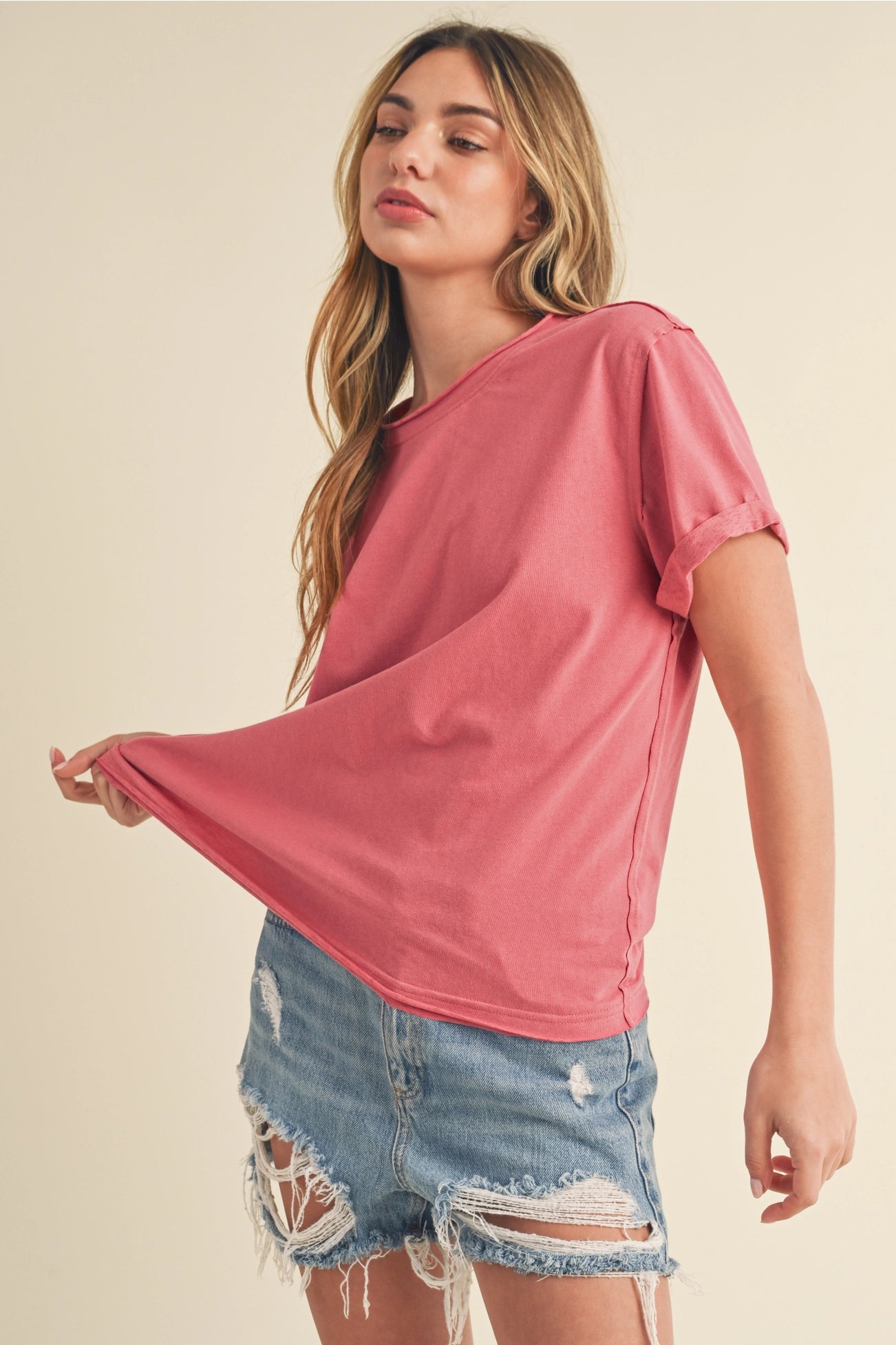 The not-so-basic basic your closet’s been craving—meet the Mali Baby Tee. With exposed seam details and an easy, relaxed fit, this tee blends classic comfort with a modern edge. Crafted from a soft cotton-poly blend, it’s made for everything from laid-back days to effortless layering. Toss it on with cutoffs, denim, or under a blazer and go.