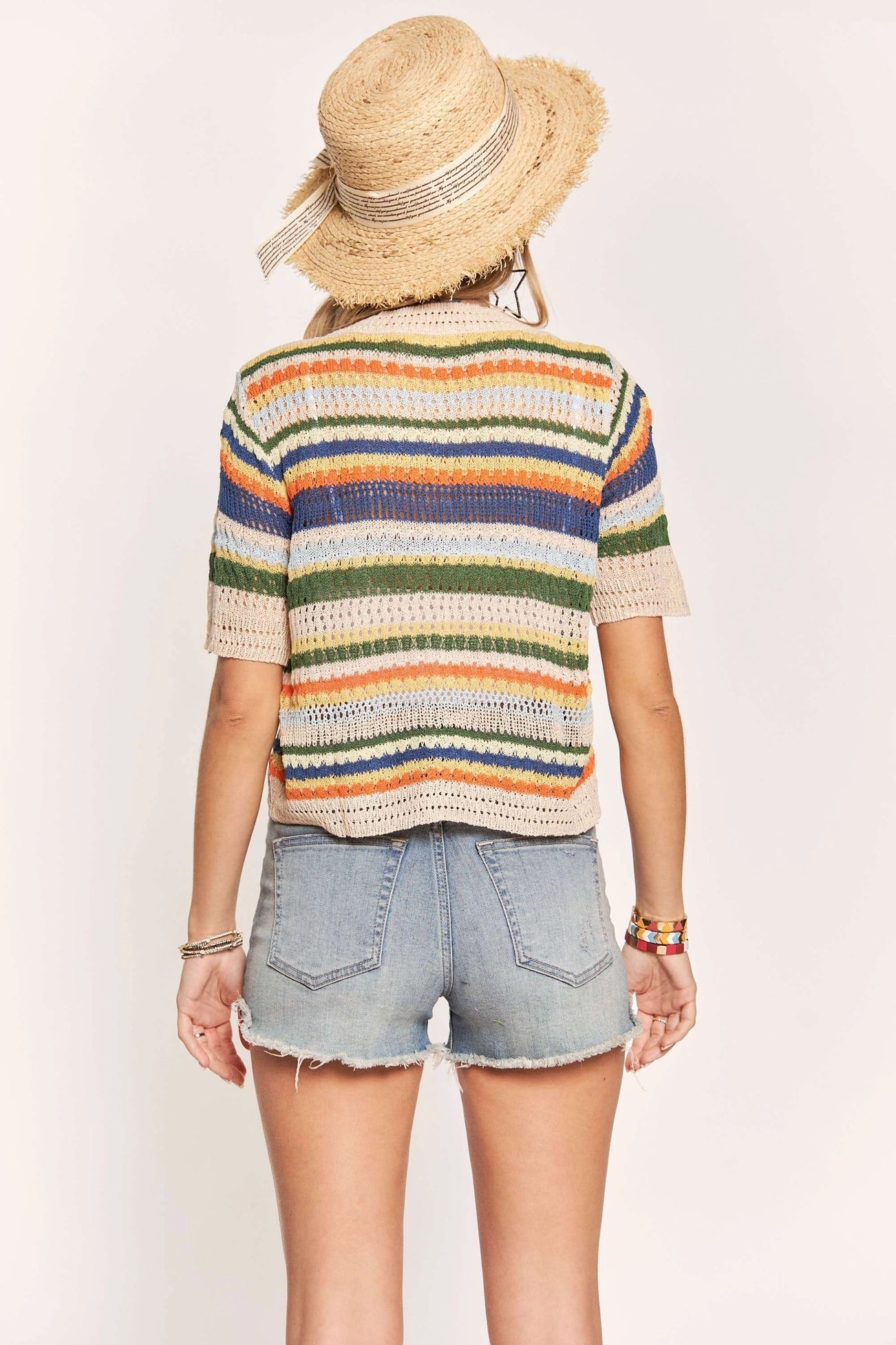 Bright, breezy, and ready for all your sunny day plans—the Sunset Stroll Cardigan is a lightweight knit dream. With its playful mix of sunset-inspired stripes, button-down front, and airy construction, this top is as versatile as it is vibrant. Wear it as a cardigan or buttoned-up sweater, layered over tanks, swimsuits, or all on its own.