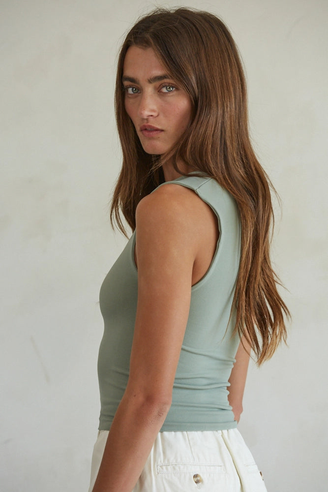The clean neckline and sleeveless cut make it an easy match with denim, trousers, skirts, or under blazers for a polished look.