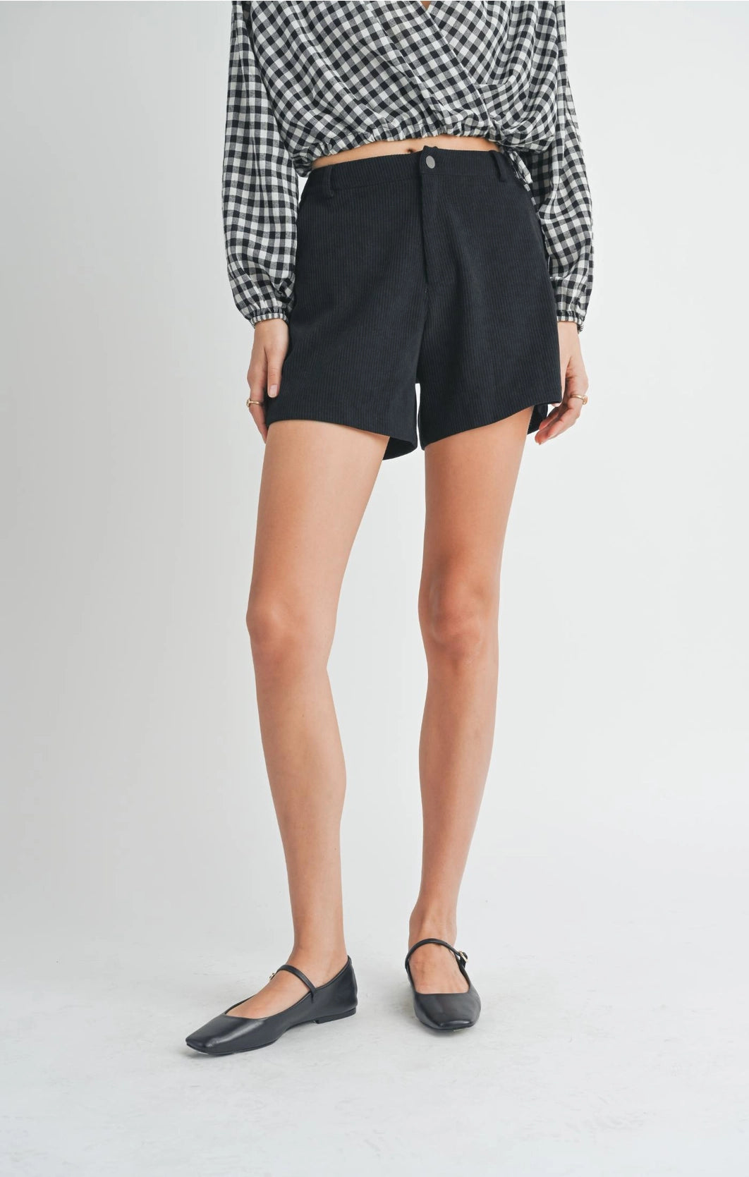 Elevate your style with the Artful Stretch Corduroy Shorts, perfect for both everyday wear or dress them up! These shorts feature an elastic back waistband for comfort and a button and zipper fly for a secure fit. The soft, stretchy corduroy fabric gives them a flowy feel, making them a versatile addition to your wardrobe.