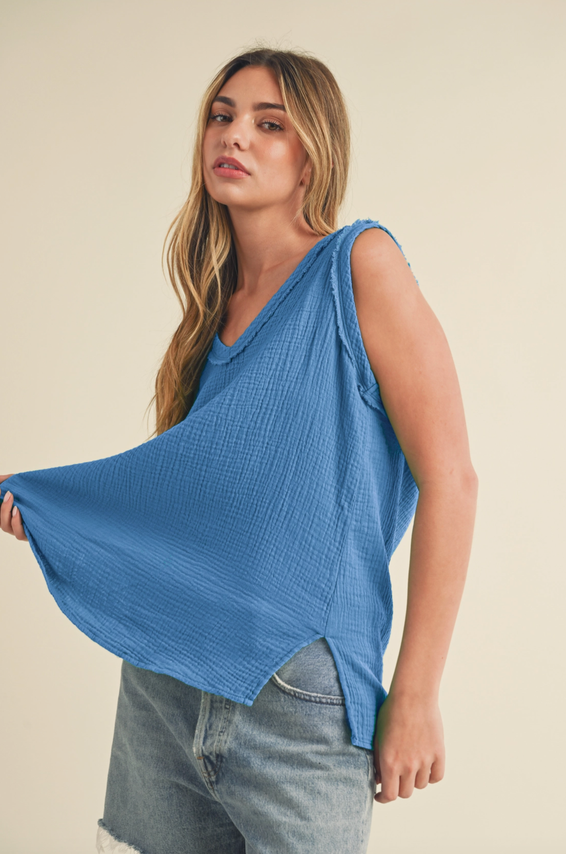 Made from our favorite cotton gauze fabric, this tank top offers a lightweight and breathable feel that's perfect for warmer days and cooler nights alike.