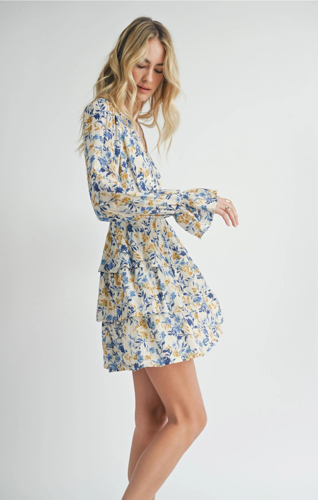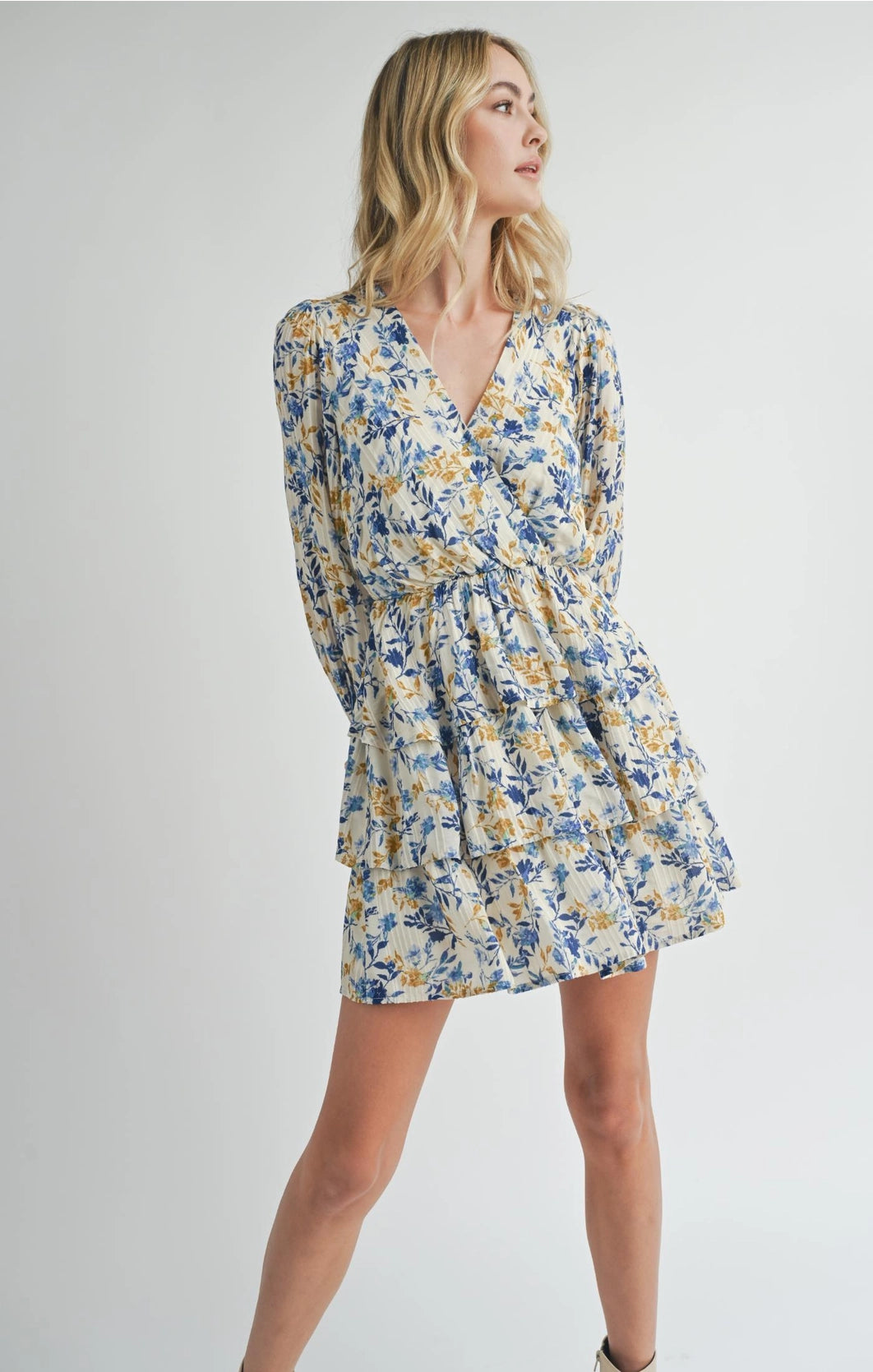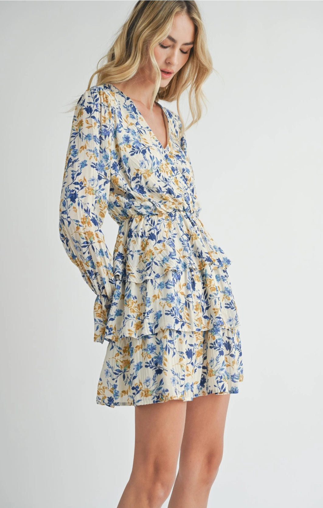 Embrace timeless elegance with the Heirlooms Surplice Layered Mini Dress. This dress features a sophisticated surplice neckline and a layered three-tier skirt for a flattering silhouette. The long sleeves are adorned with frilled cuffs, adding a touch of charm, while the button closure on the neck ensures a secure fit.