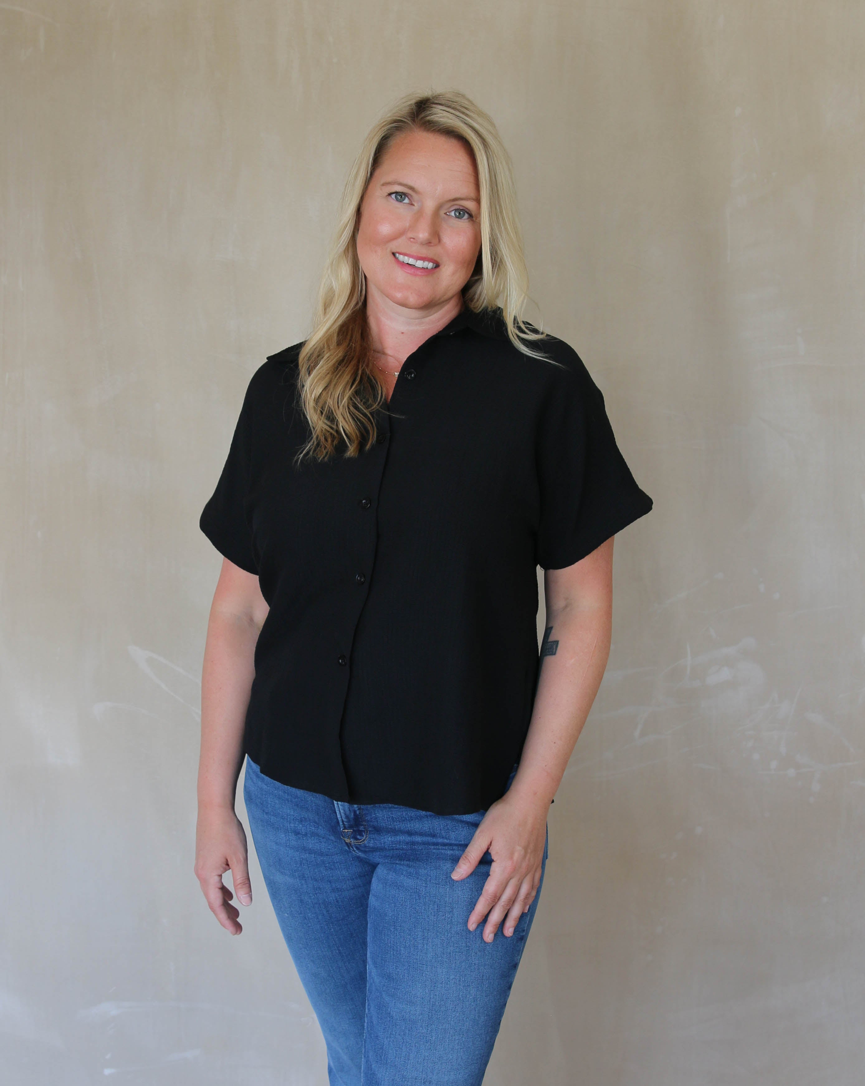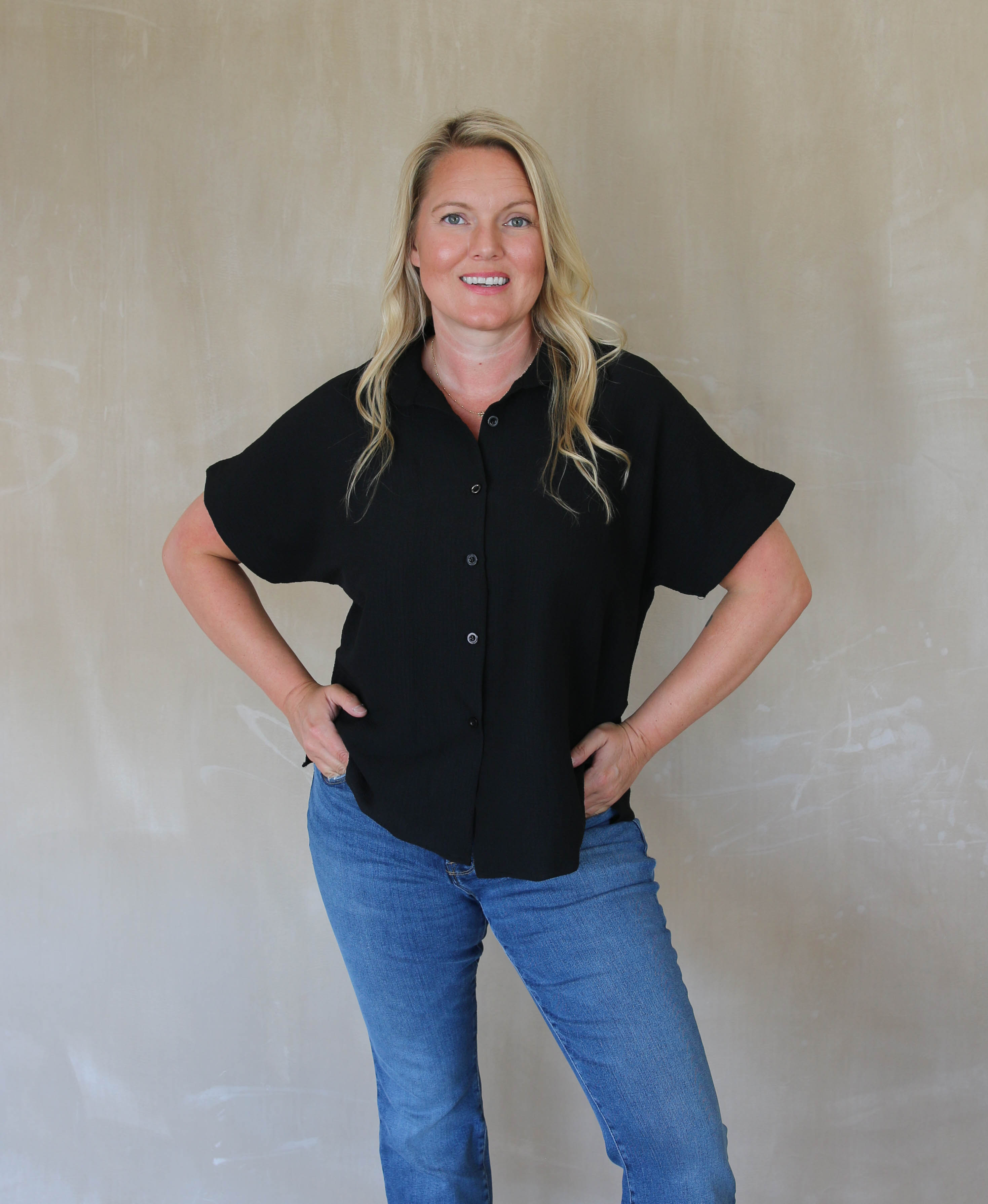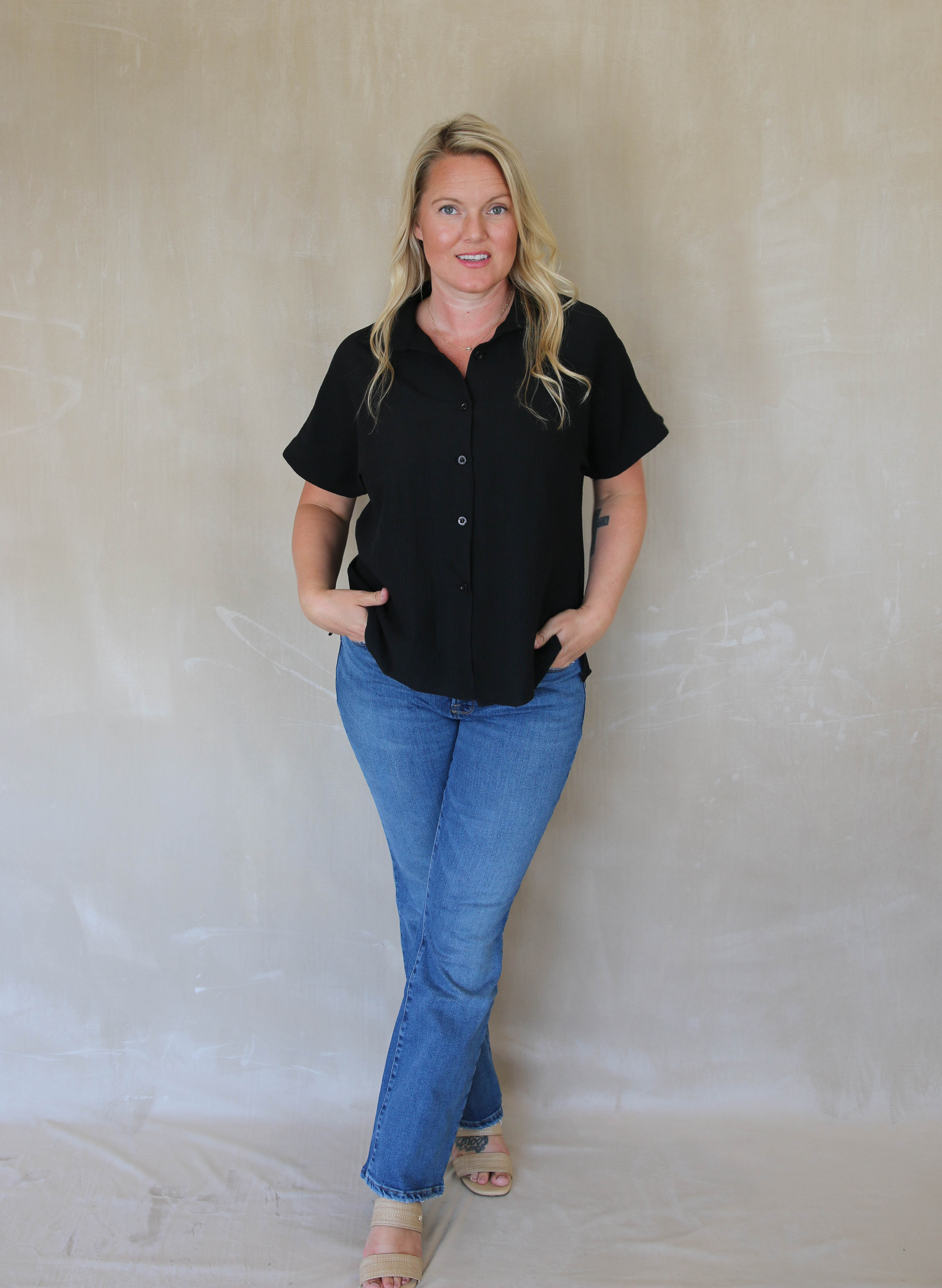 Loose Fit Button Down Top - Black