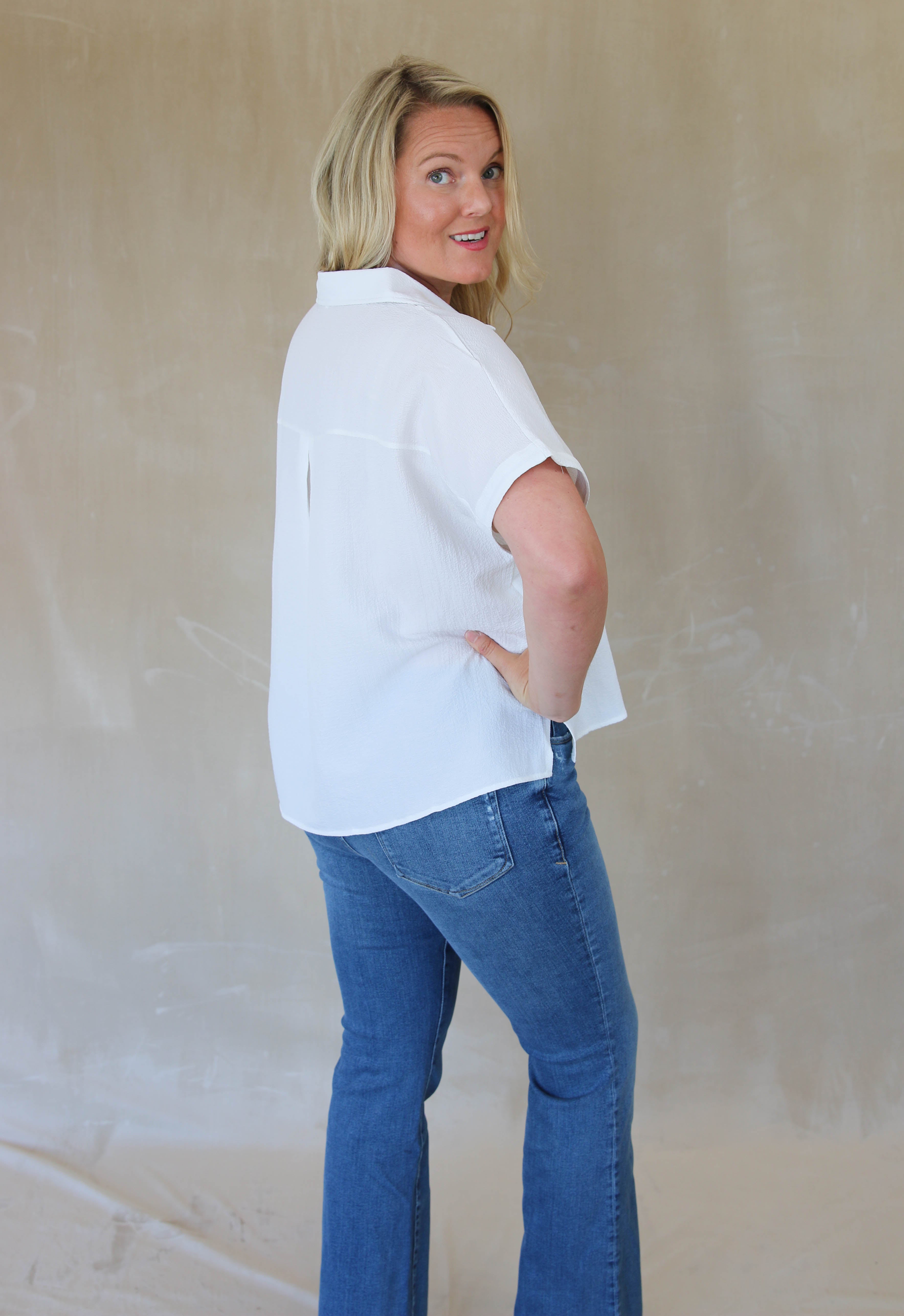 Loose Fit Button Down Top - White